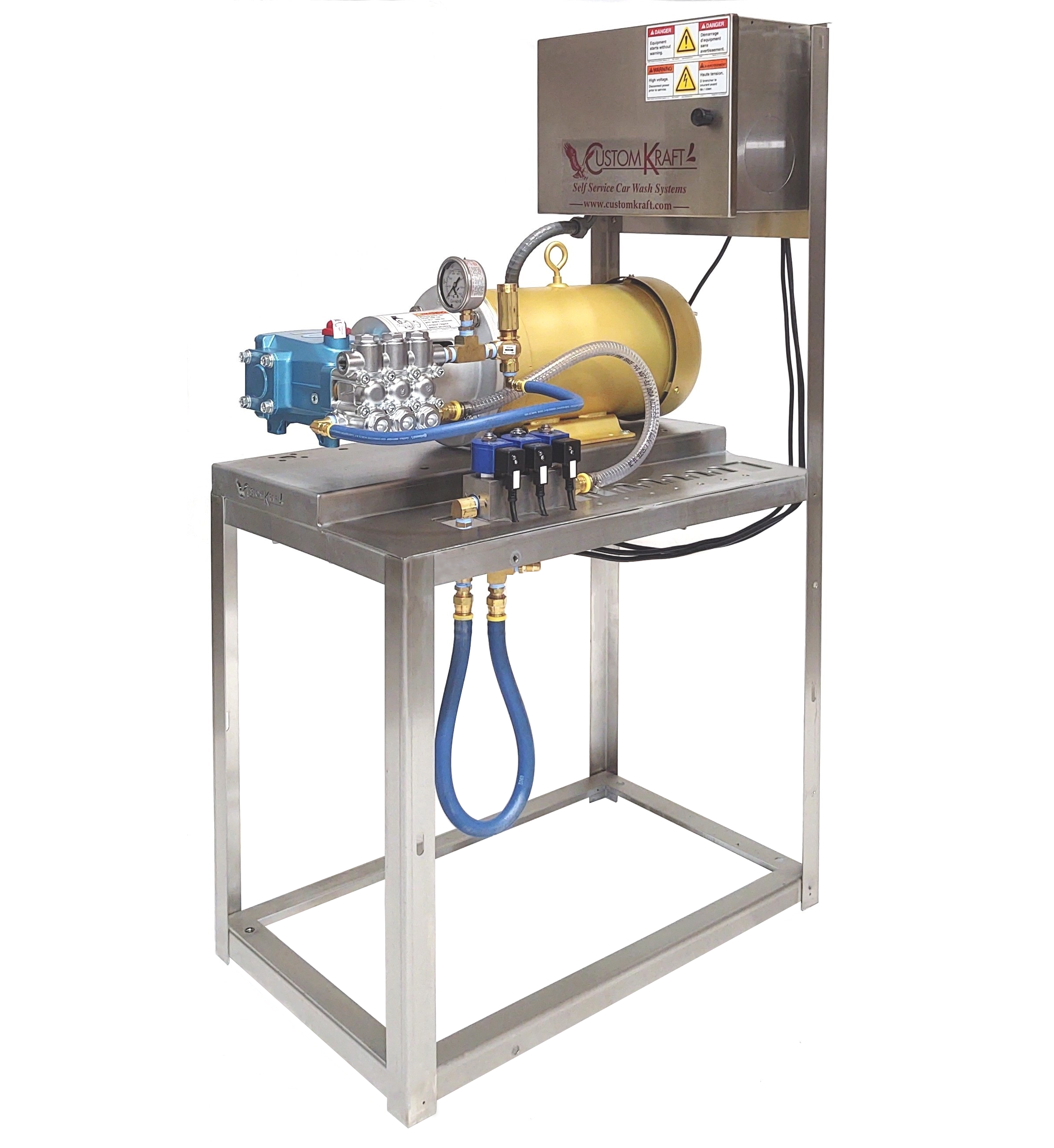 CustomKraft’s modular systems are engineered and manufactured to specification for high-pressure washing operations.  These units are typically used for dealers, fleet, municipal, prep units or homeowner operations.  Custom units are rugged and may be initiated with a switch, key, timer or trigger gun activation.